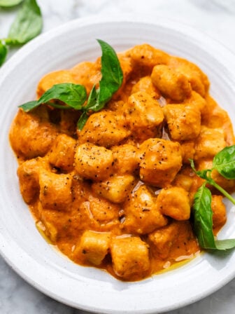 This creamy roasted pepper pasta features a fresh roasted red pepper sauce made from roasting all veggies on a sheet pan and blended into...