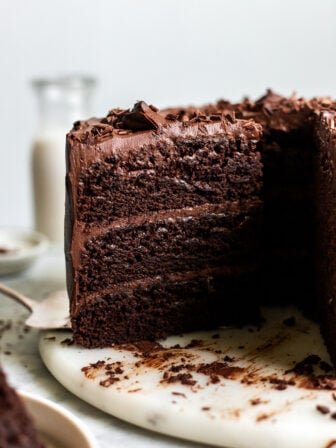 This ultra lush and rich vegan chocolate cake is the definition of decadence with a soft and tender moist crumb. Coated in the FUDGIEST...