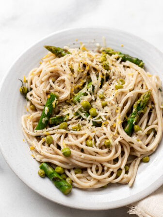 Read More Easy Creamy Lemon Vegan Pasta with Asparagus & Peas (Dairy free)