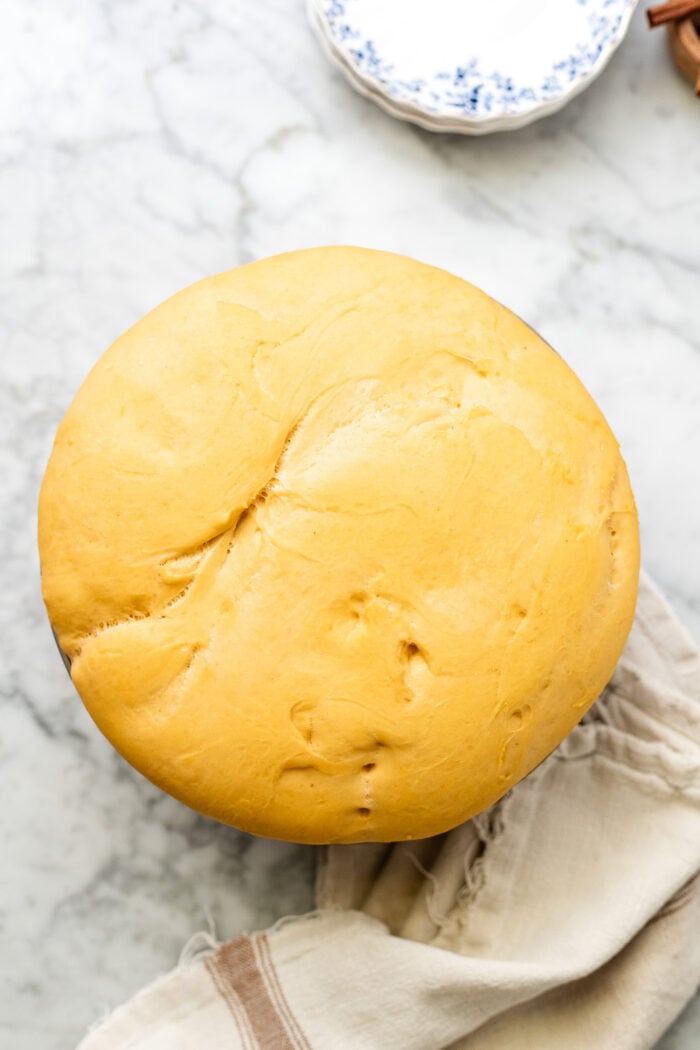 - Second rise: cover the Parker house rolls with a thin clean dish towel again and place in a warm area (by the oven is fine) to nearly double in size again, about 30 minutes. Preheat the oven to 350F.