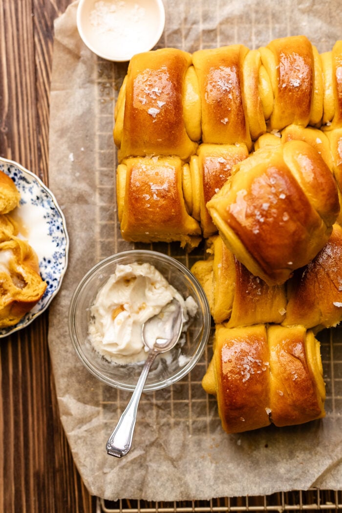 SOFT Sweet Potato Parker House Rolls with Salted Maple Butter – Dairy Free and Vegan!